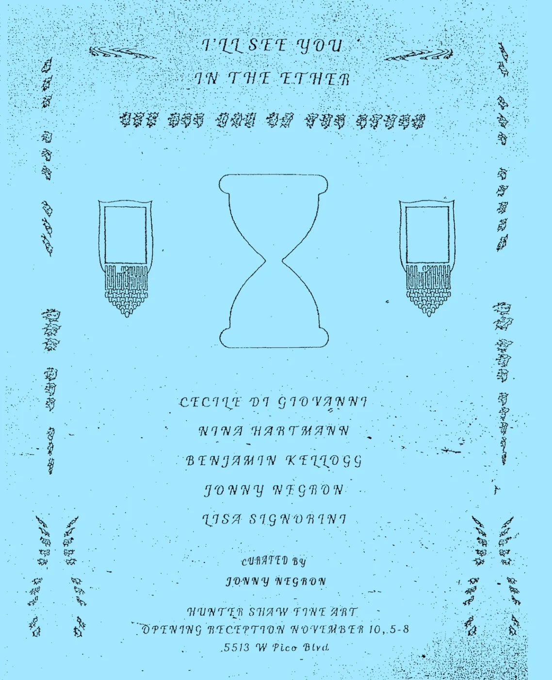 I’ll see you in the ether brings together five artists whose works engage an esoteric dimension within the context of contemporary life, connecting timeless symbols, archetypes and iconography to the present world.