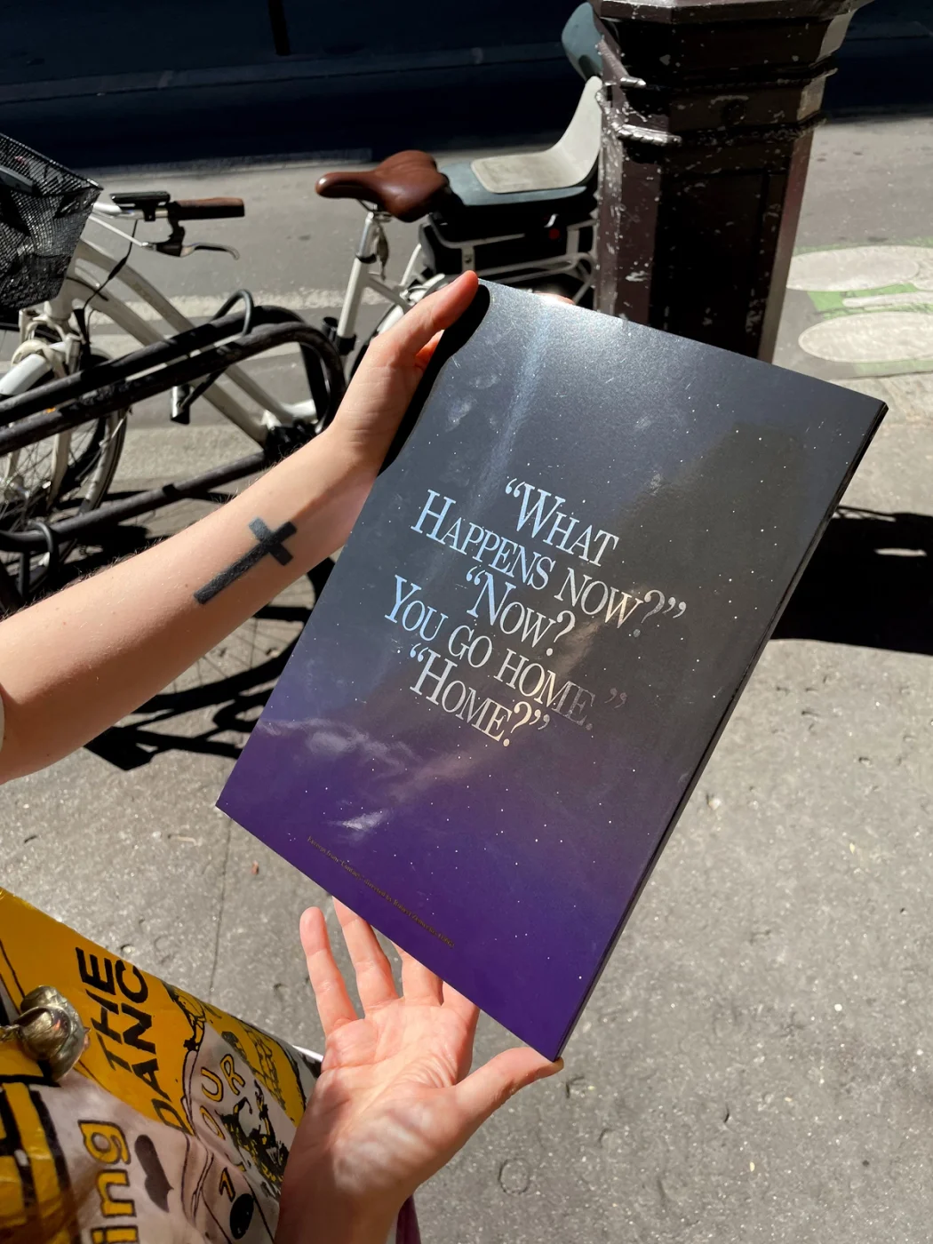 The title (“Inhabited Fictions.”) uses the house from the Home Alone logo as its emblem, a defining reference in Cécile’s work that naturally echoes her own search. The dream then unfolds in the celestial all-over print that wraps the sleeve, placing us squarely within the American dream at its most dazzling (space exploration, the pull of the unknown, and a longing for connection beyond Earth), evoking Robert Zemeckis’s Contact (1997) and the opening sequence of Joe Pytka’s Space Jam (1996).