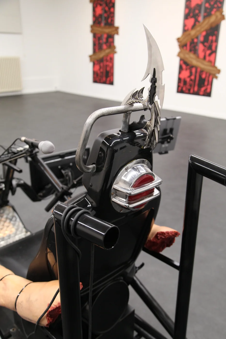 The cart that carries Mathilde Fernandez was conceived by Cécile di Giovanni. Echoing the metaphor of a boat crossing between shores and gradually encountering fragments of memory — here, in the form of problematic videos from online influencers — di Giovanni envisioned a kind of 2.0 vessel, drawing inspiration from a low-tech, hacker-inspired imaginary.