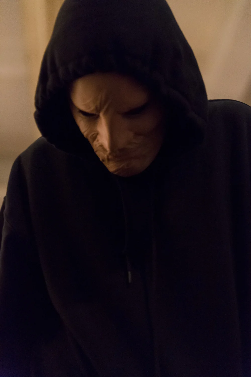 In Internet Ballade, the burnt latex face mask worn by Cécile di Giovanni could evoke a corrupted identity — a scorched surface standing in for the self, marked by trauma, digital saturation, or collective memory. Both protective and disfiguring, the mask becomes a ghostly interface: a ritual object shaped by the aesthetics of horror, cosplay, and internet simulacra. It reflects the violence of visibility in online culture, while also hinting at the monstrous tenderness of bodies shaped by screens.