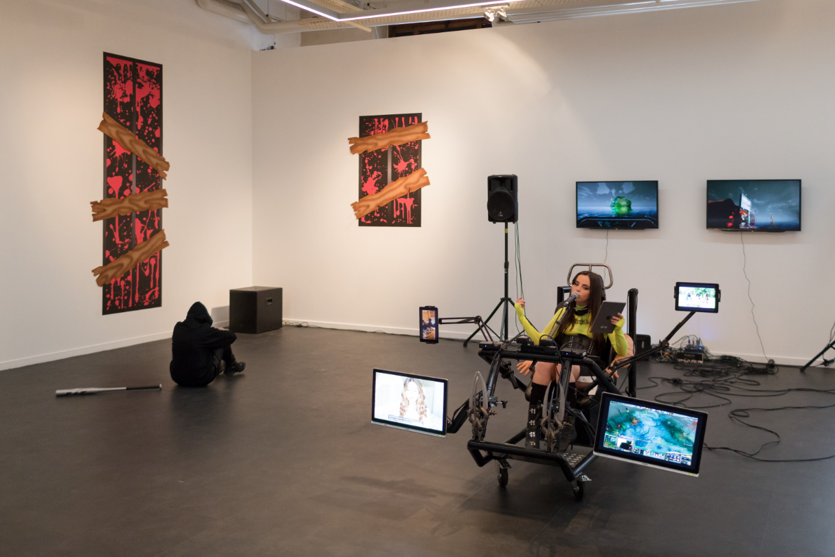 Each of the video and audio excerpts displayed during Internet Ballade was sourced from problematic or unsettling content originally posted on YouTube. Among them: a footage of Logan Paul staging a reaction video near a suicide victim in Japan’s Aokigahara forest, Lindsay Lohan, livestreaming herself in the streets of Paris as she attempts to forcibly take a homeless child with her, a series of cryptic and troubling videos by Marina Joyce that sparked viral concern over her mental and physical health.