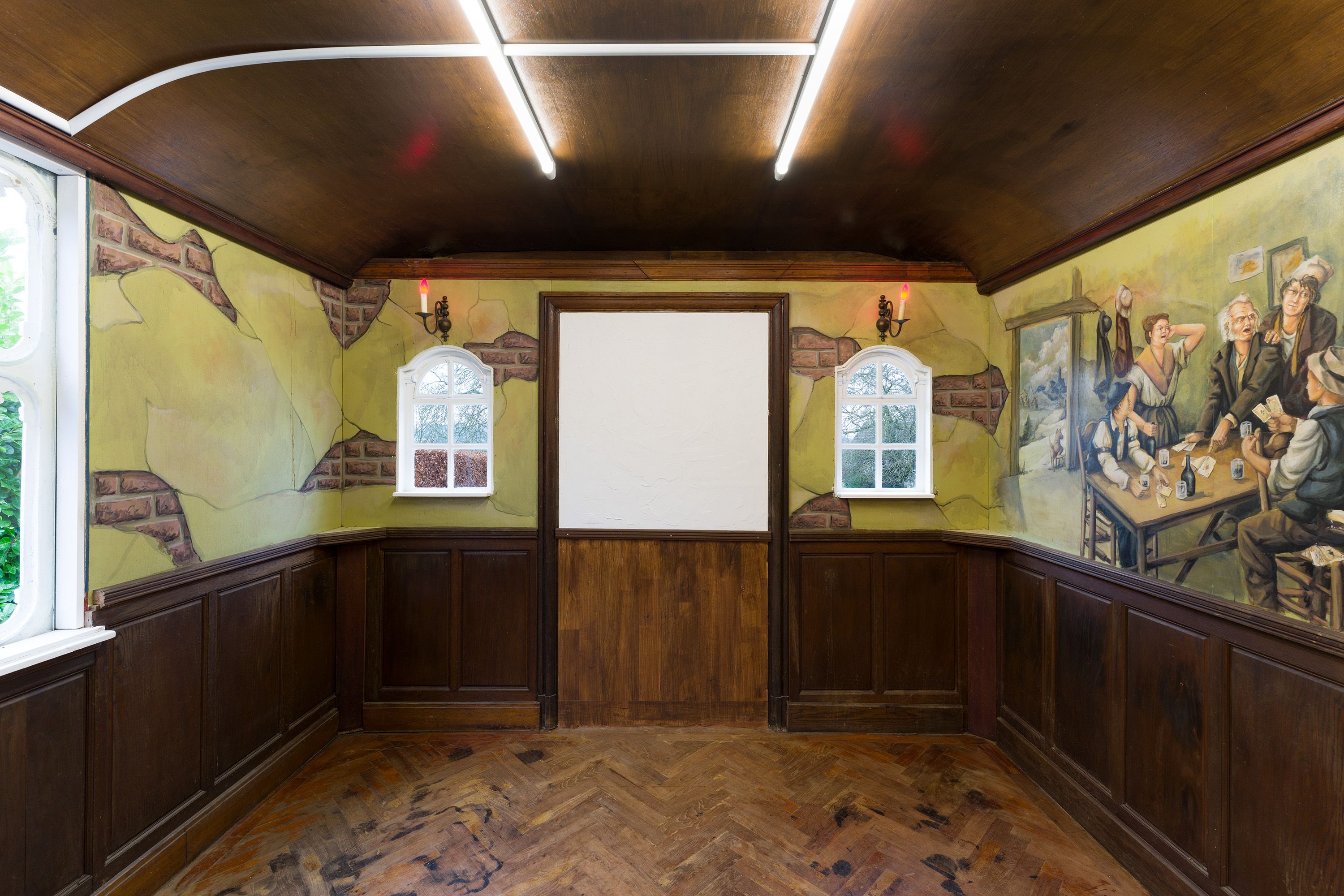 It is precisely this visual repetition, this shift between childhood decor and latent unease, that the installation seeks to activate. The objects created become distorted echoes of a saturated imaginary: one of seemingly protective spaces that have become charged with suspicion. They function as surfaces for projection, where the artist's own hauntings crystallize through a double movement: the childhood fear of abduction (as in Hook), and the adult suspicion of the hidden predator within the realm of childhood (as projected onto Neverland Ranch). By reworking these motifs (light switch, door fragment, logo reshaped into a handle) di Giovanni's stage a mirrored interplay between fiction and true crime, cinema and memory, set design and psychological device. A zone of ambiguity emerges, where the uncanny infiltrates what once felt familiar.