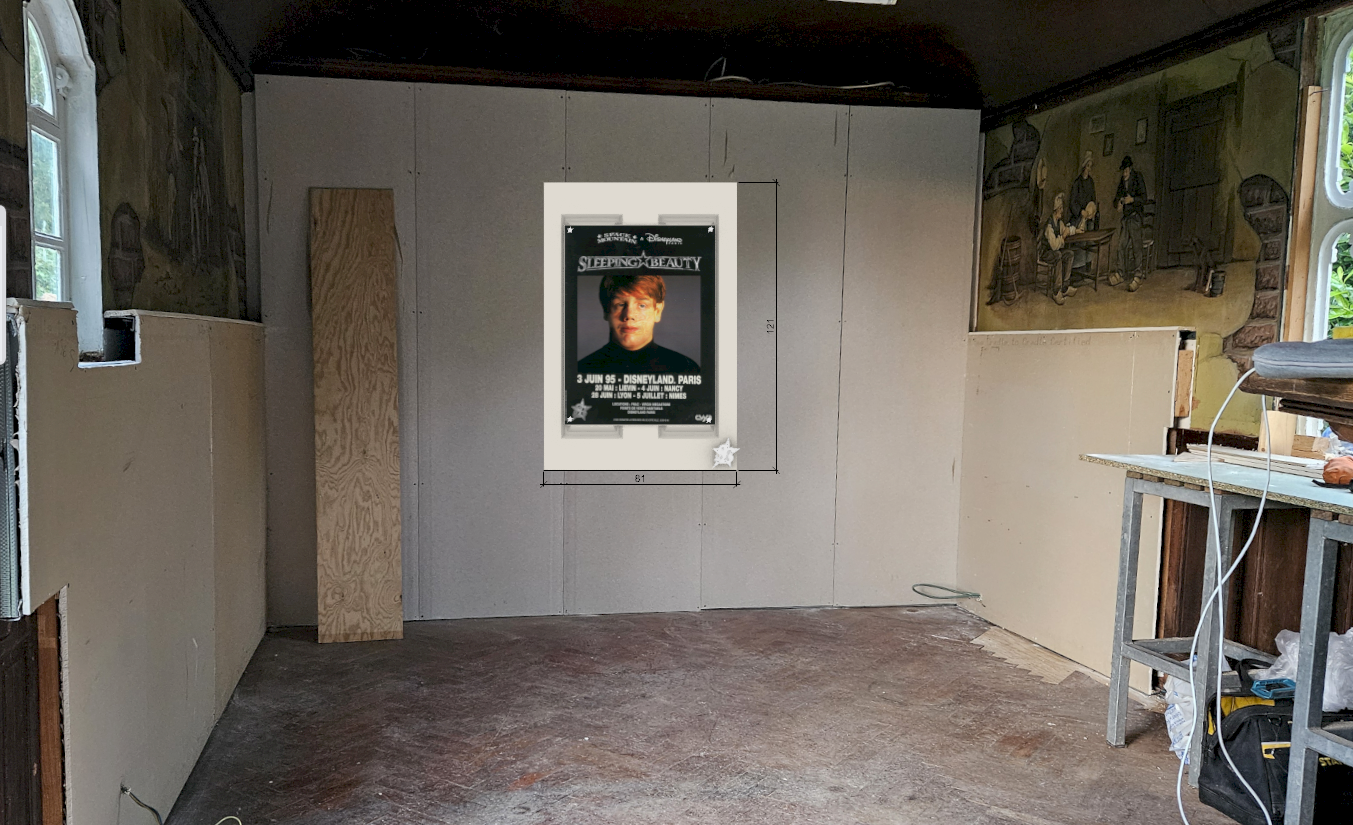 In Sleeping Beauty, I revisit an uncertain childhood memory: during a trip to Disneyland Paris in 1995, I thought I saw Michael Jackson through a window of the Sleeping Beauty suite. This memory, on the edge of fantasy, forms the starting point for a process of excavating memory, where collective imagery, saturated by media narratives and iconic figures, becomes infused with personal affect, to the point of merging with intimate recollection.