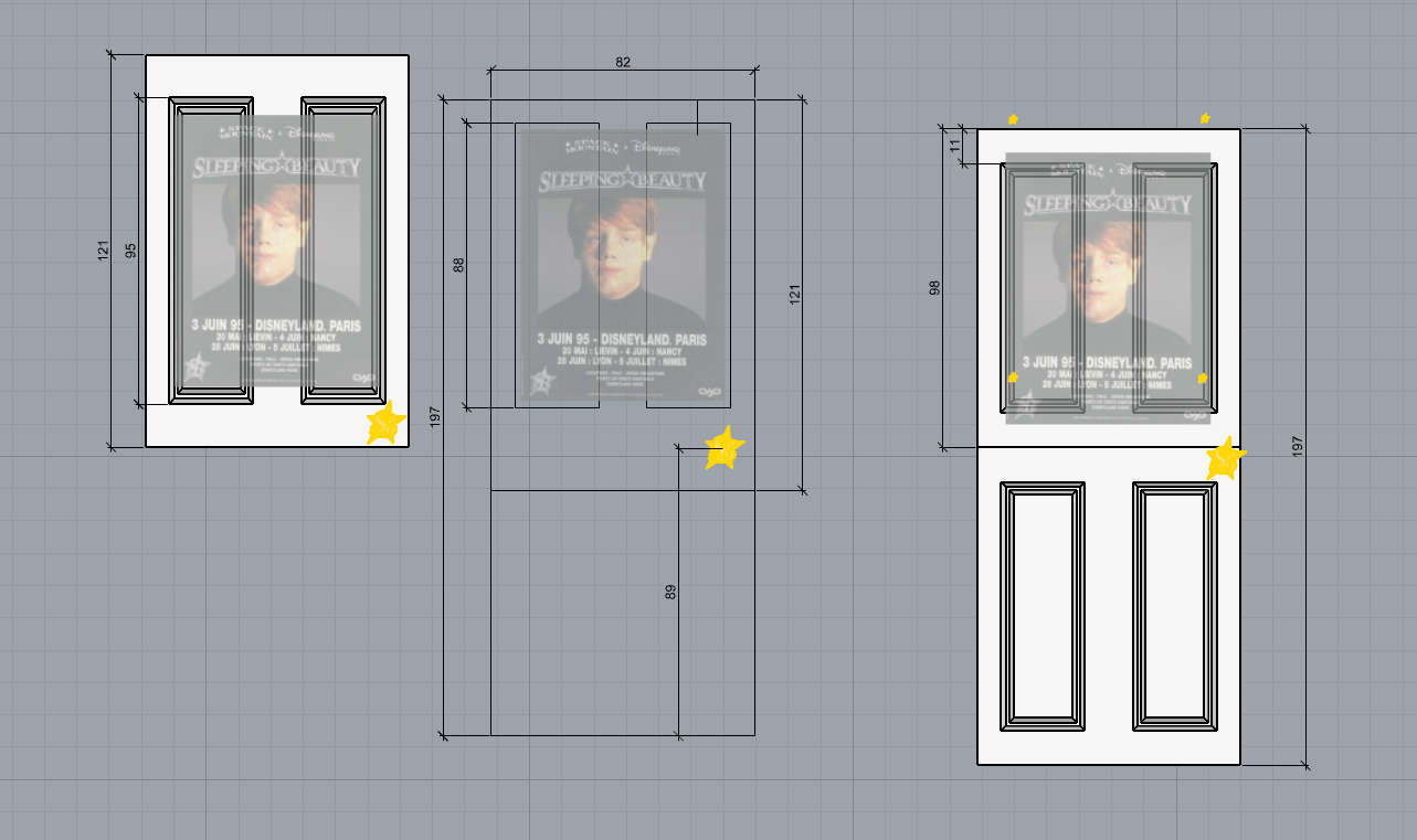 Proportionally, the pushpins had to reflect the visual weight of both the poster and the door fragment.