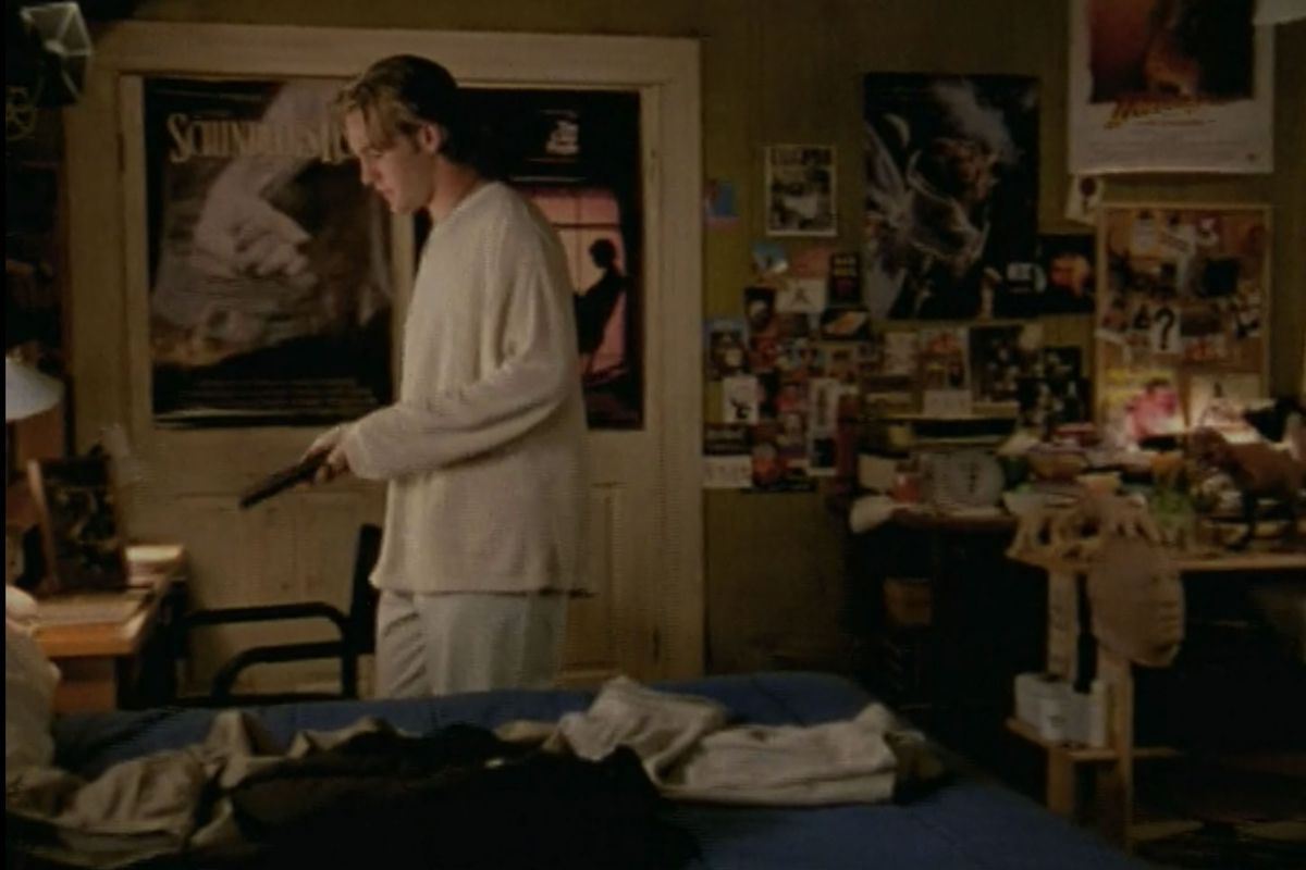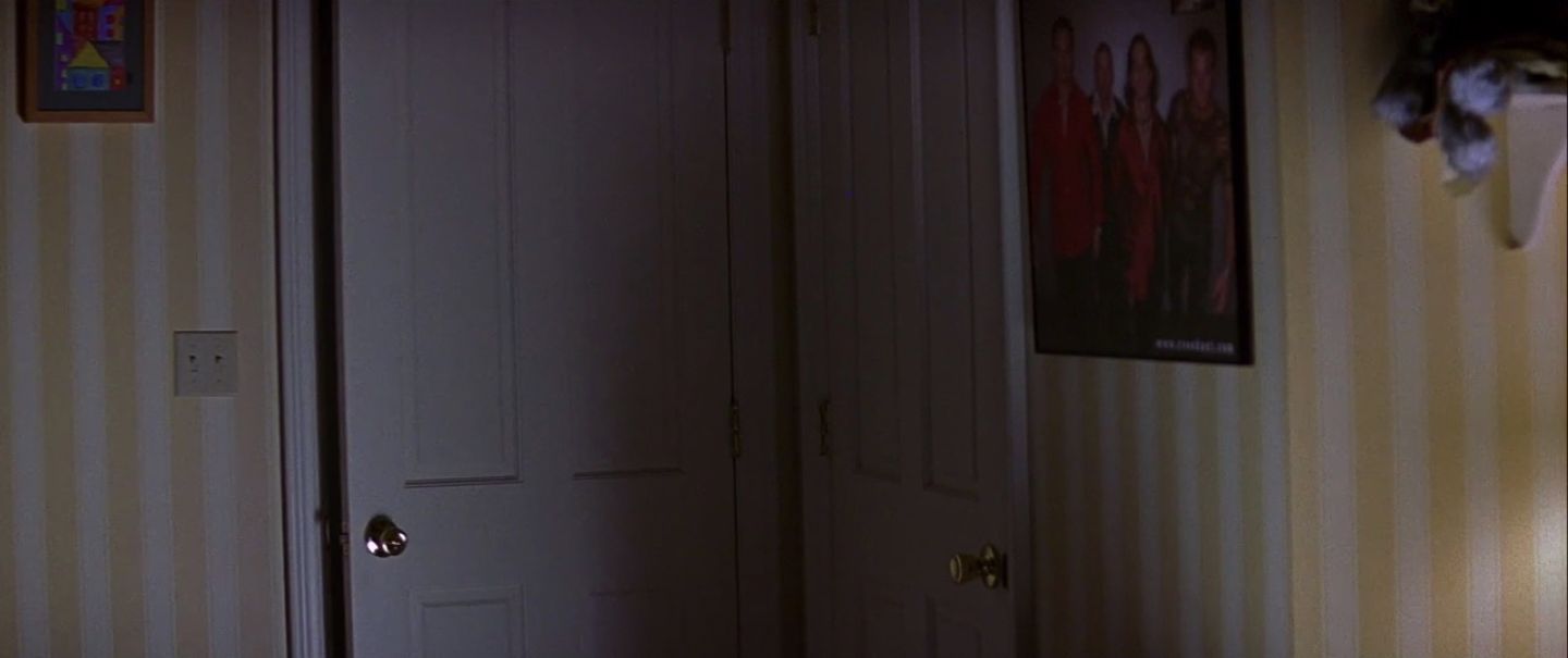 The American bedroom door, particularly the teenage bedroom door as seen in the 1990s, was a central symbolic element in the early stages of Sleeping Beauty: Episode 1. A marker of intimacy and self-expression, it’s often used as a surface for projection: a place to tape posters, display fragments of identity. In films and TV series from the '90s, the door becomes both a threshold and a screen. It is also something that conceals what is meant to be revealed: a symbolic partition between the visible and the repressed, the domestic and the uncanny. Like in The Twilight Zone, it signals a passage into another dimension, a liminal space where the familiar turns into what we fear, yet cannot fully name.