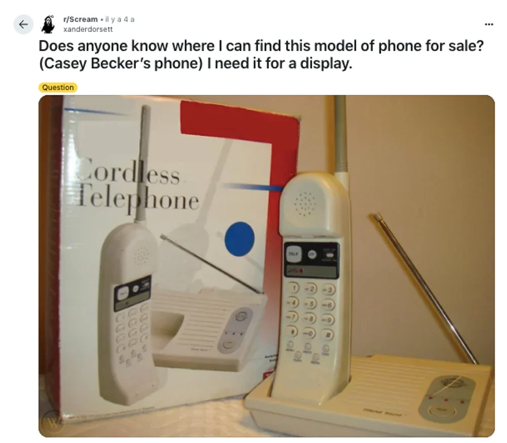 However, the BellSouth phone model used by Casey in the opening scene of the very first Scream film is by far the most iconic — likely due to its rarity today and its status as an emblem of a bygone era.