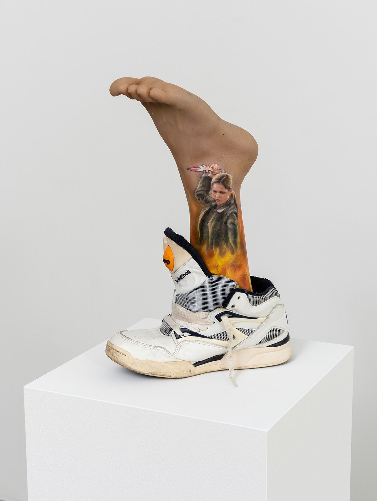 As in much of Di Giovanni’s work, the domestic or popular object (here, the sneaker) is repurposed to activate a shared visual memory, while the fake, fragmented body speaks as much to fetishism as to survival. The reversal of the foot plays with the logic of the simulacrum: it is not a foot, but the image of a possible body, a fictionalized body, whose skin becomes a narrative surface. At the intersection of prop, relic, and toy, this sculpture brings together the intimate and the collective, the kitsch and the sacred.