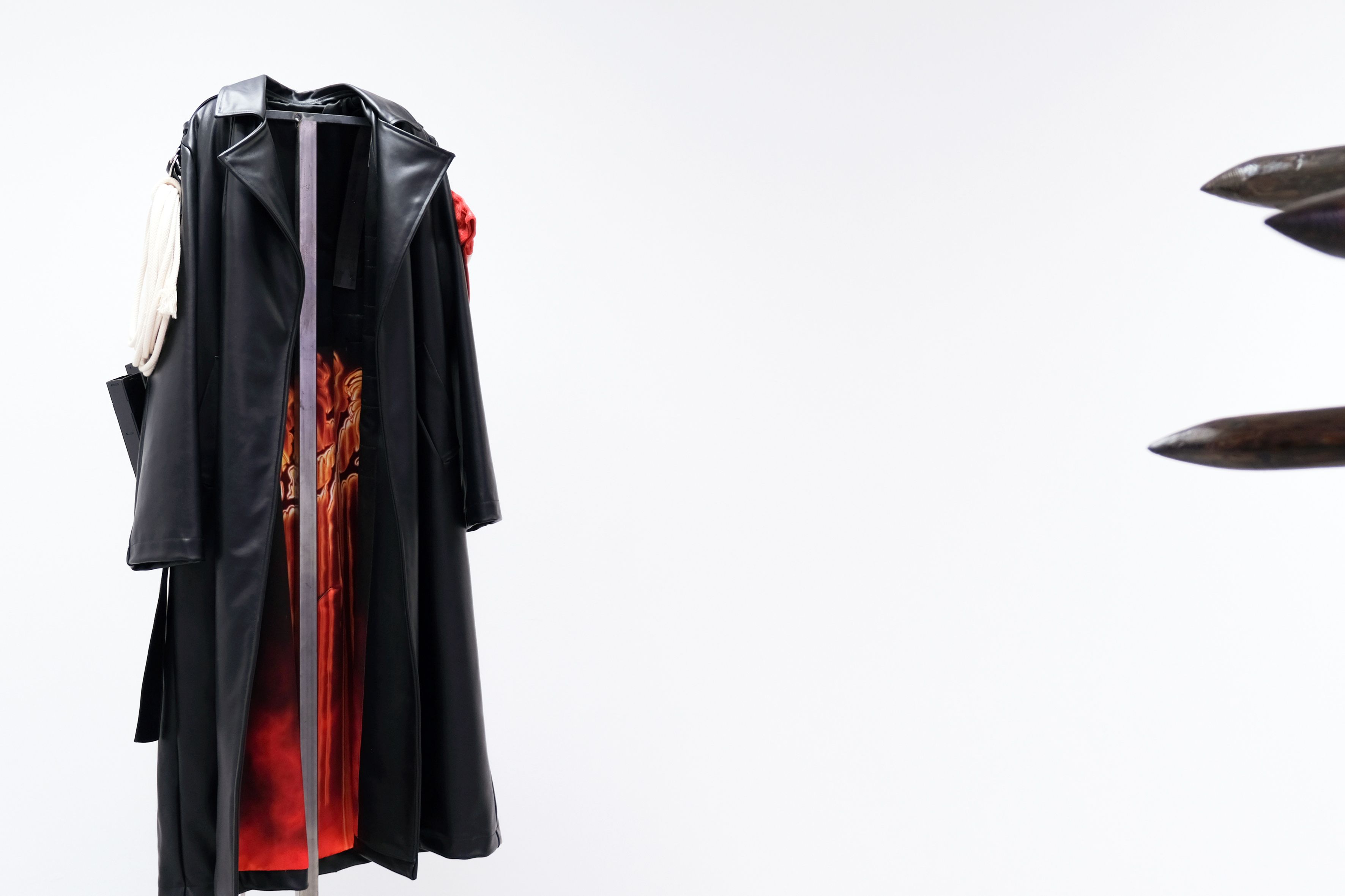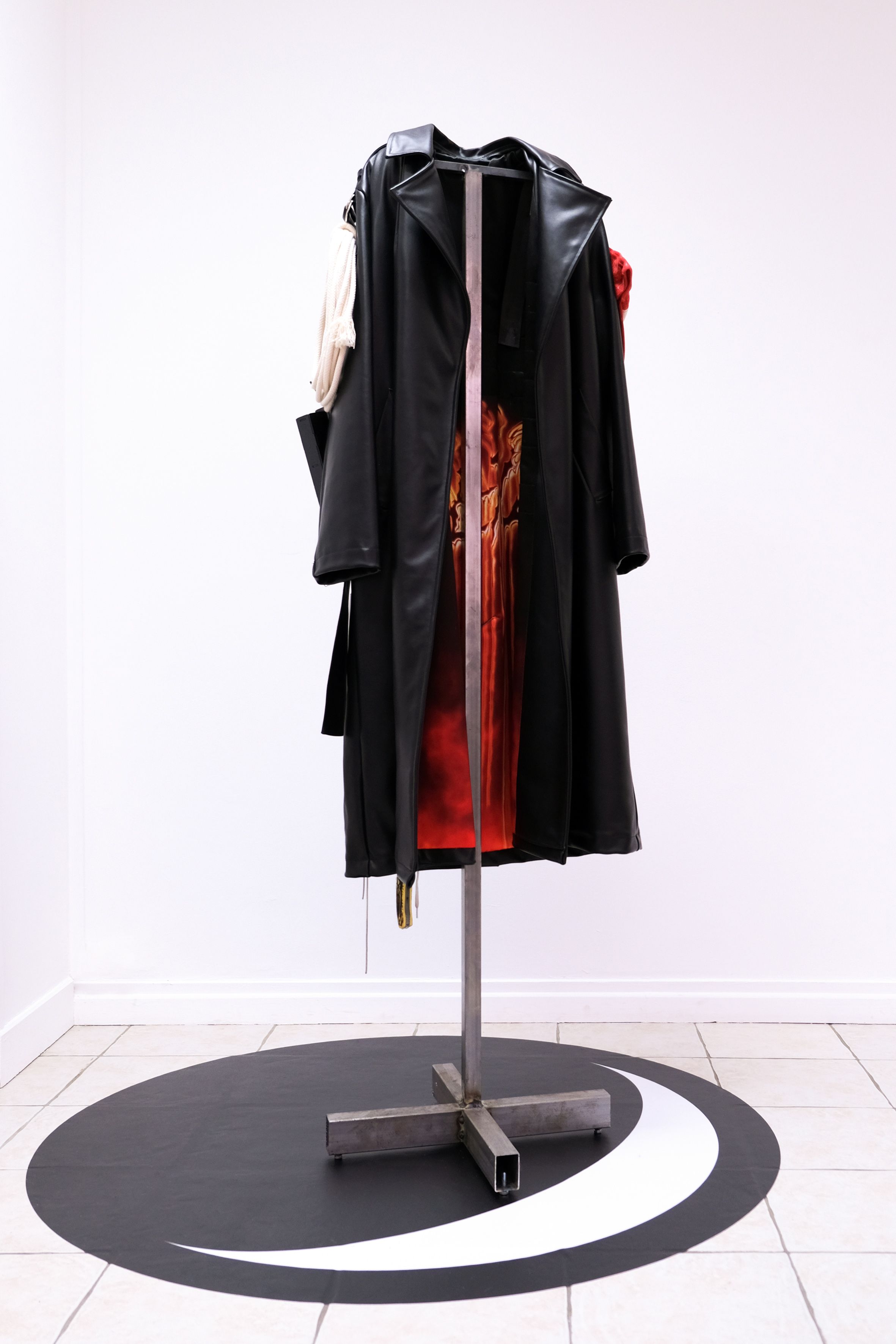 (...) Reinventing a world also means extending one’s physical body into a new fictional space, one with new abilities and possibilities, much like what video games and role-playing offer. The End Coat, for instance, an object once inanimate, now shaped by the posture of its wearer, becomes the perfect armor. It allows the hero to inhabit a super-body: a solid, resistant shell, forged from the weight of their existence and the trials they’ve endured.