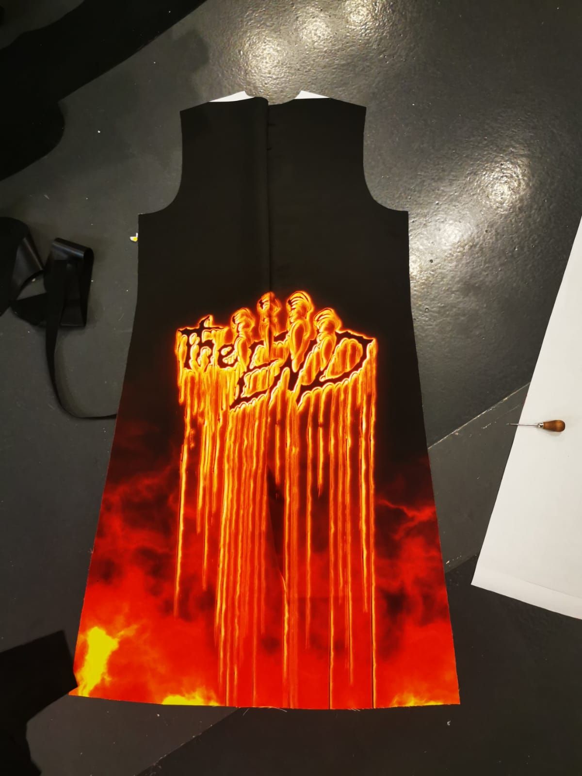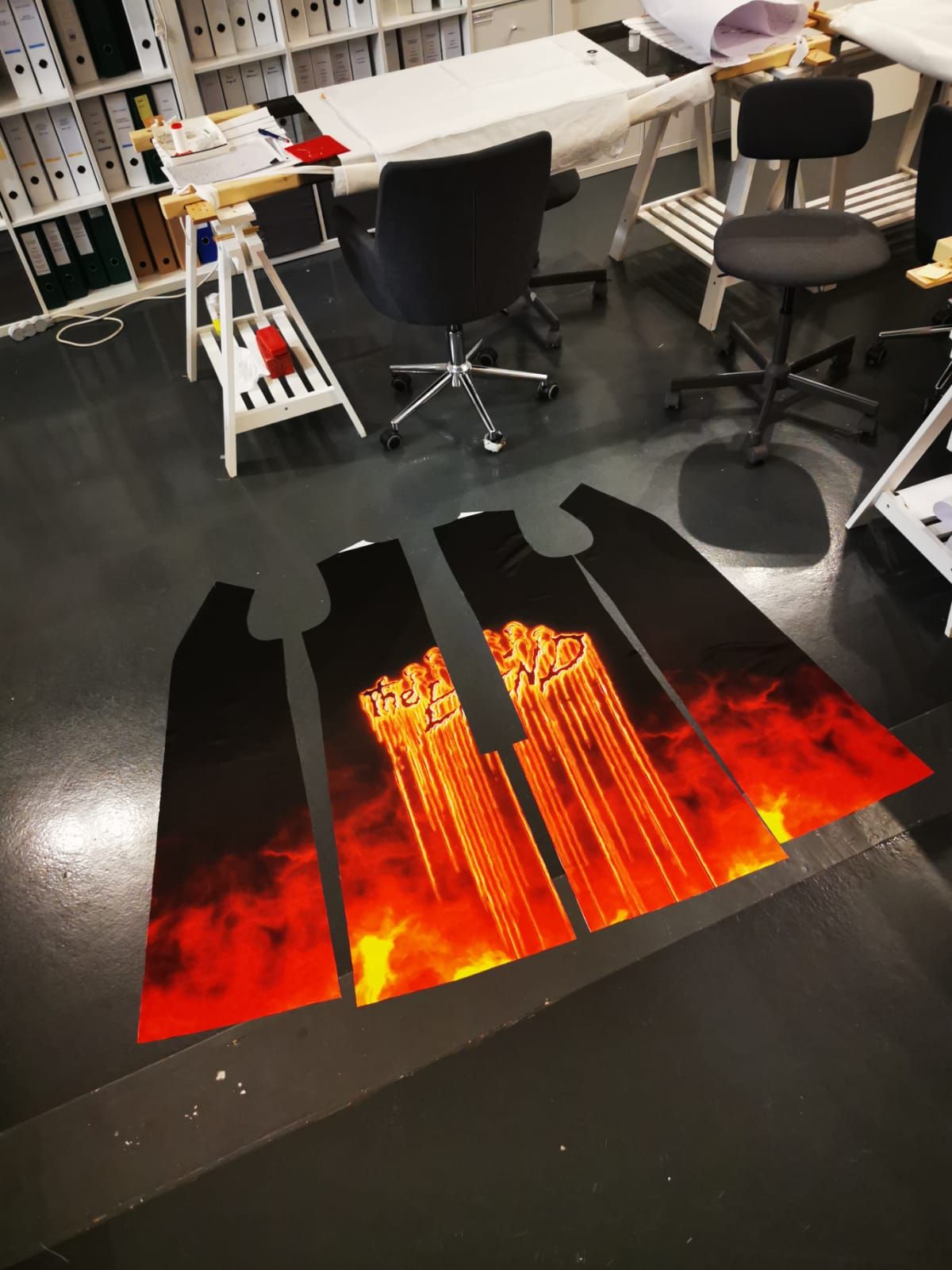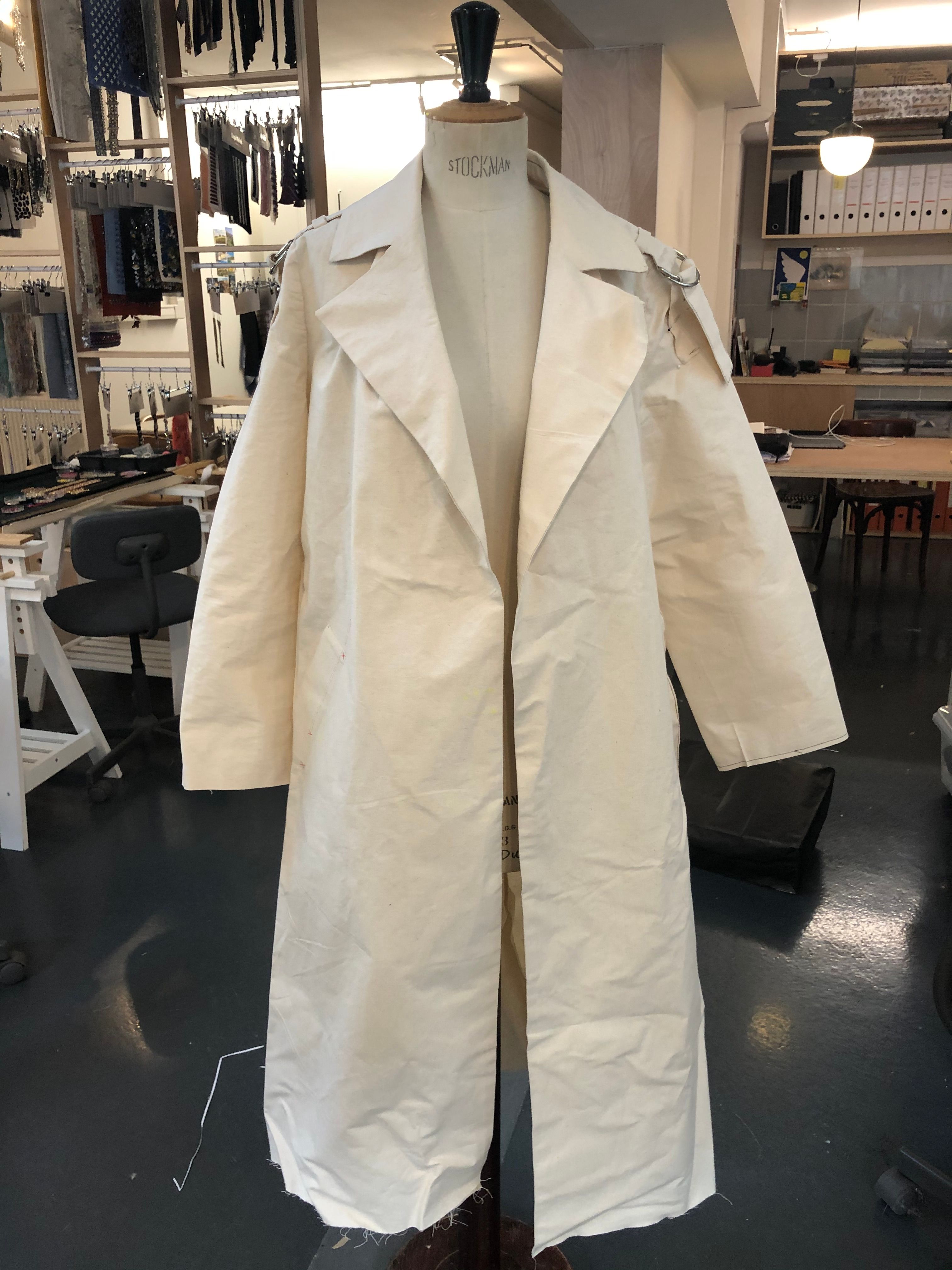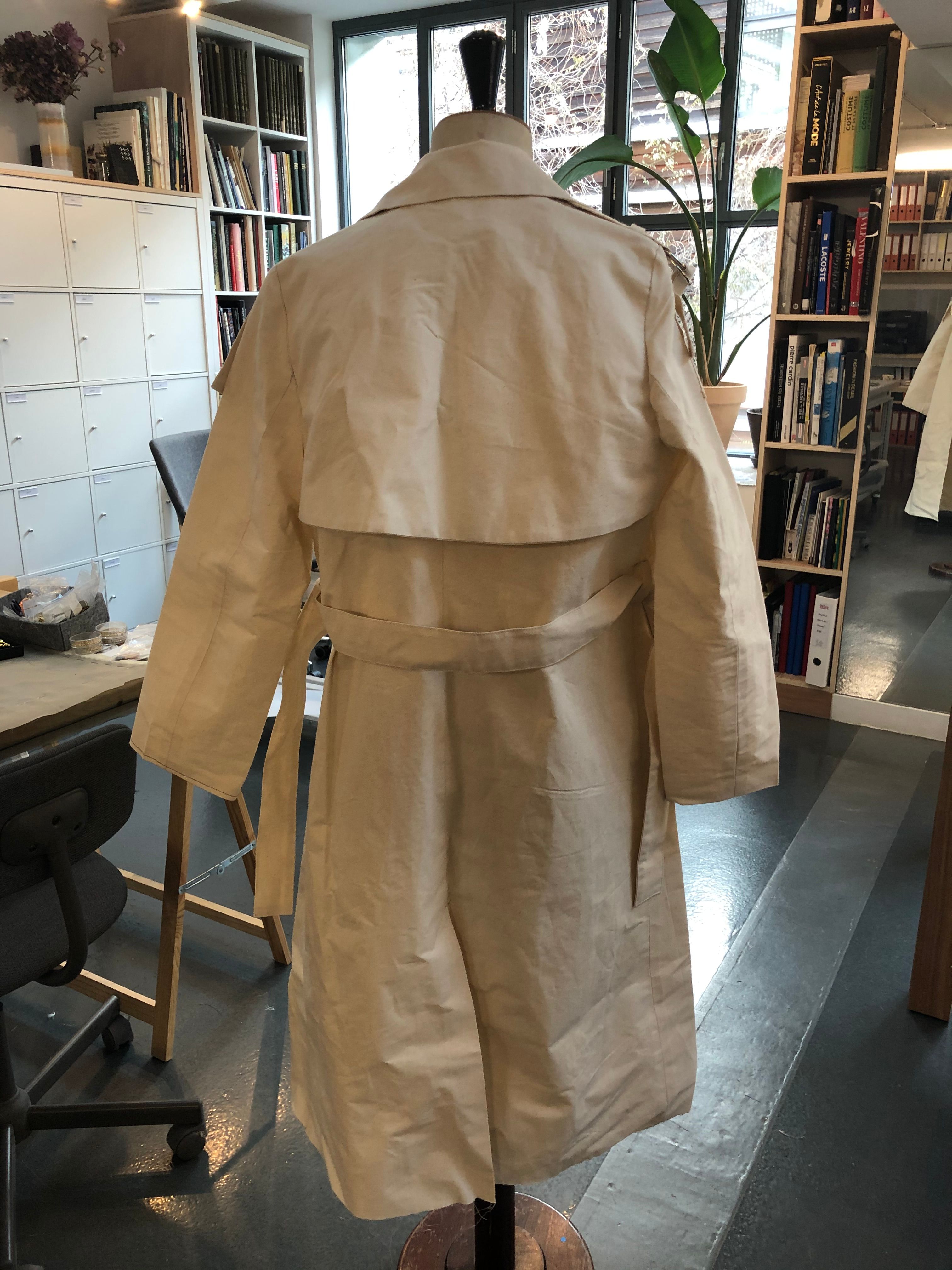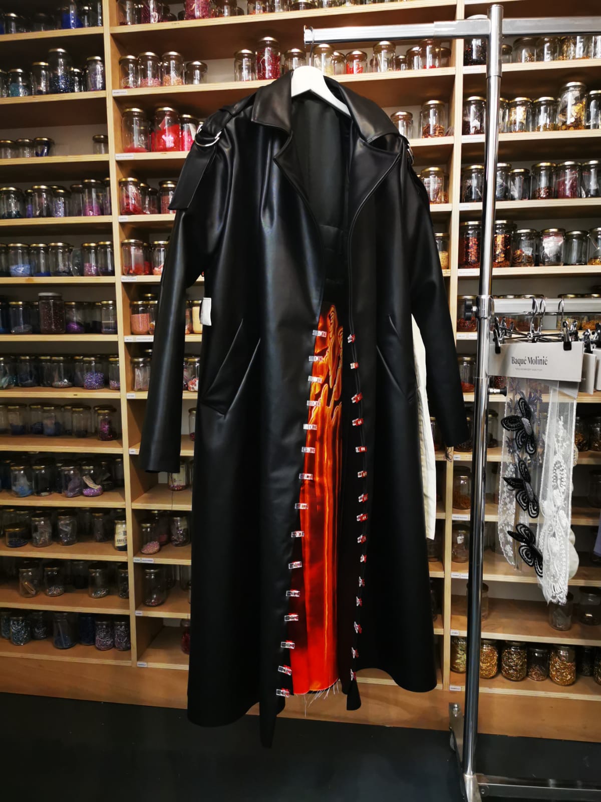 From the very beginning, it was important to include a printed lining inside the coat. The idea of attaching objects to the interior was also considered (and remains possible) but for the exhibition, it was chosen to suspend objects only on the outside.