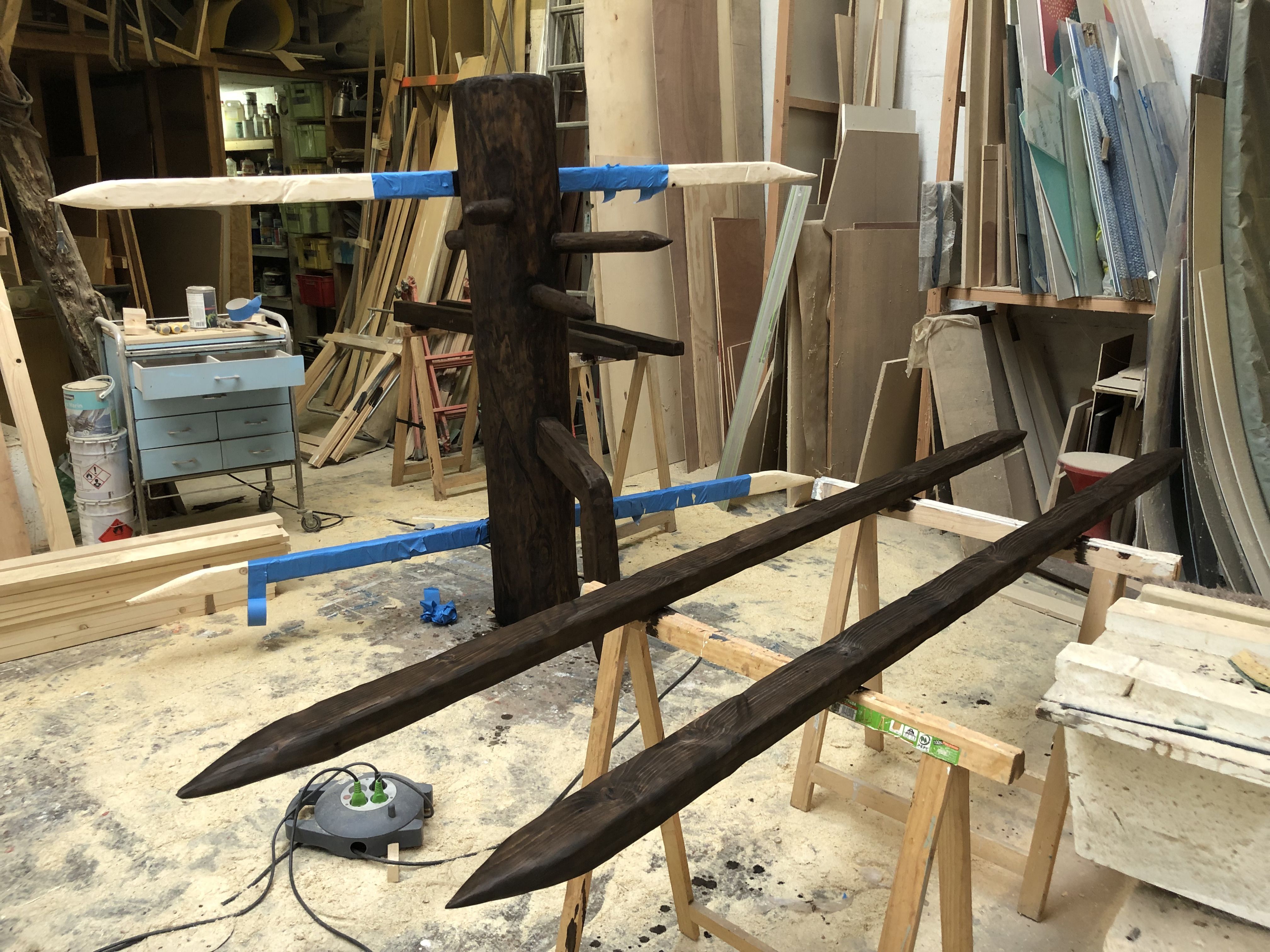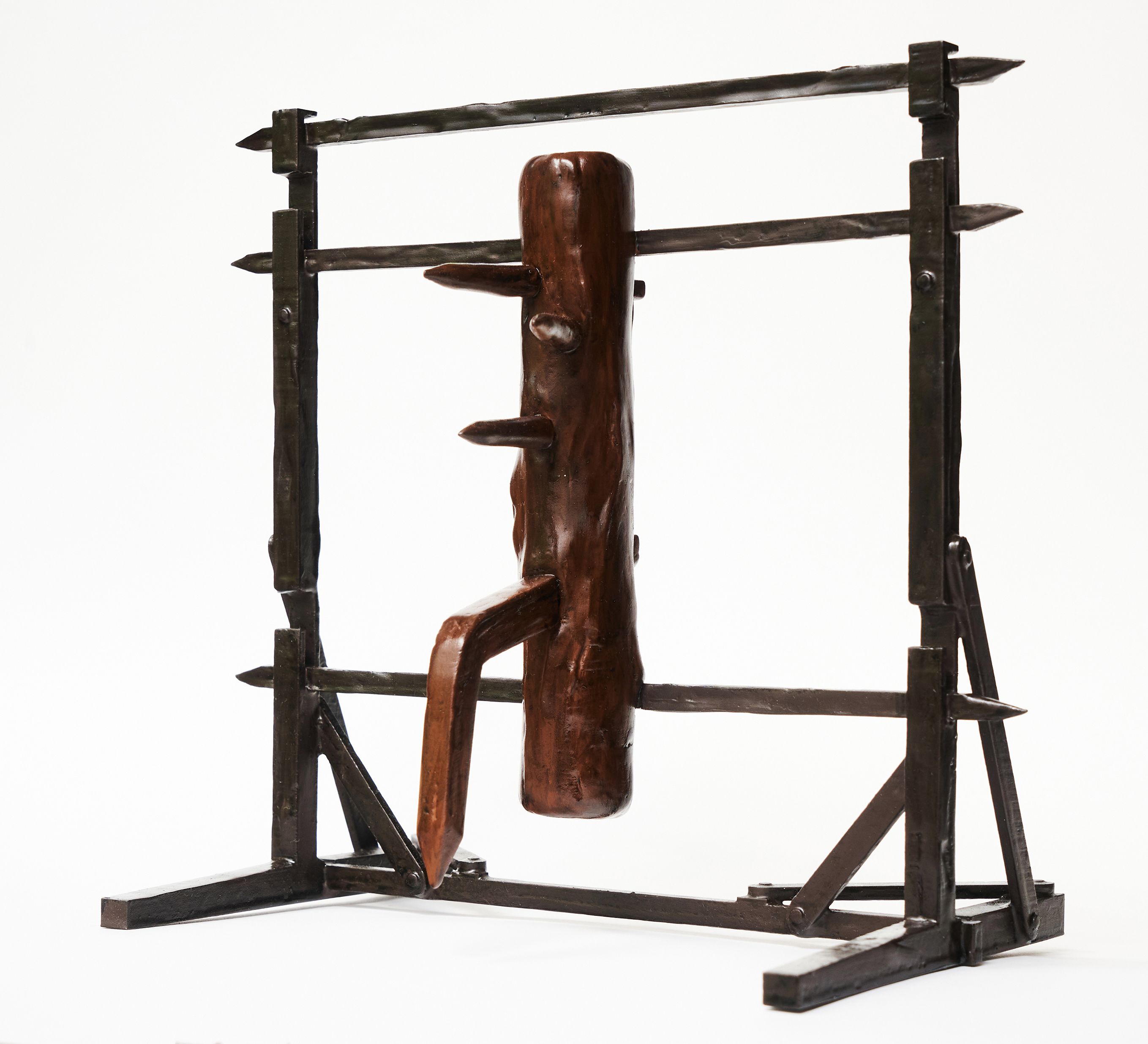 The works YWNWA Totem and Figurine Totem are directly inspired by traditional Shaolin training dummies. Their design evokes an immediately visible sense of danger. The forms, reminiscent of torture devices, gradually give way to a more ambient, pervasive threat.